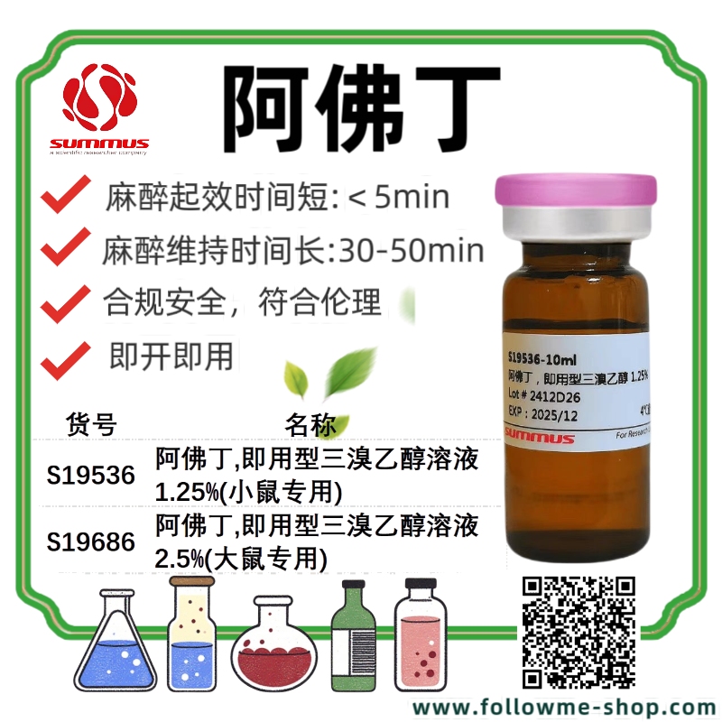 1. S19536 阿佛丁,即用型三溴乙醇溶液1.25%(小鼠)