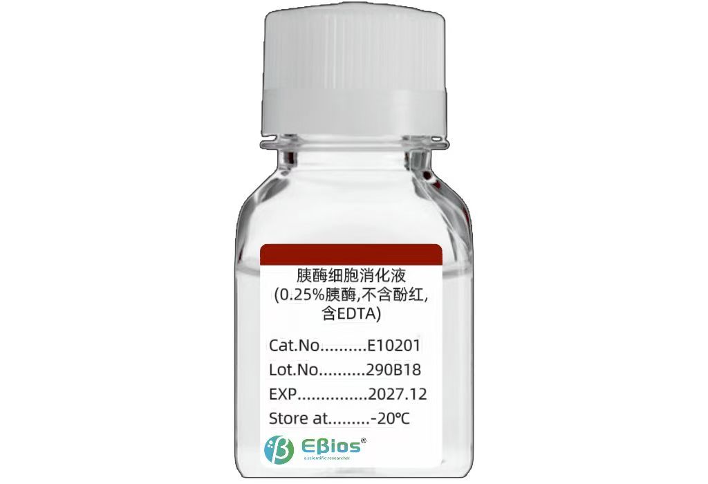 产品介绍胰酶细胞消化液(0.25%胰酶)含 0.25%胰酶和 0.02%EDTA(0.53mM),溶于无钙镁平衡盐溶液中,经过滤除菌,可以直接用于培养细胞和组织的消化。本产品具有方便快速、稳定安全、细胞状态好等特点。