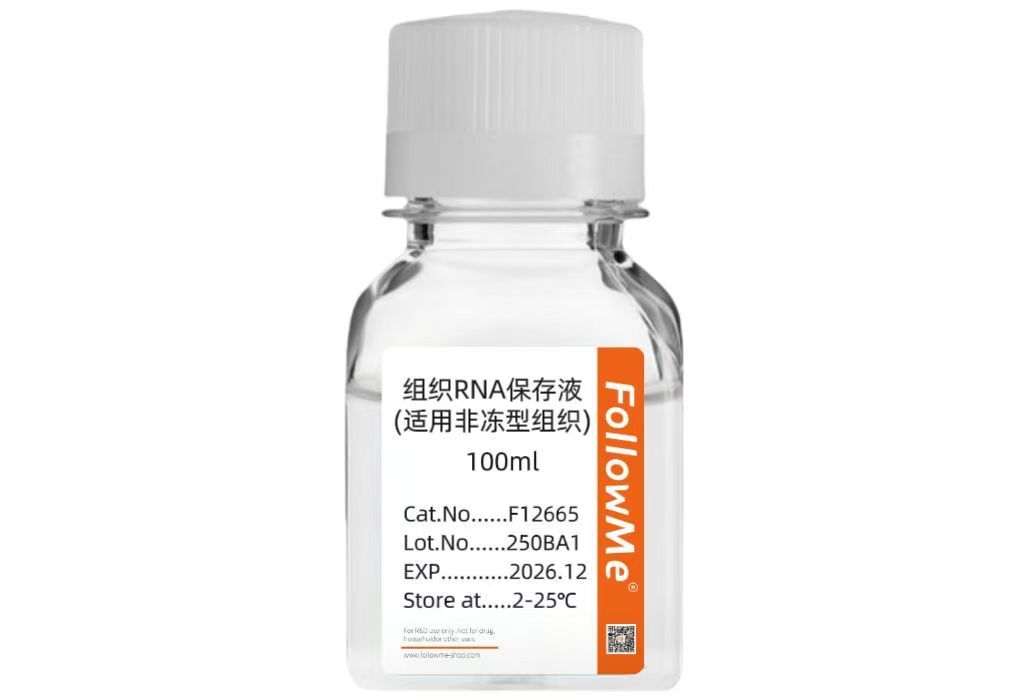 产品简介组织RNA保存液(适用非冻型组织,非无菌)是一种无毒的可直接使用的样品储存液,能使细胞内的RNA与RNA酶分离,可以快速可靠地保存动物组织、细胞内的RNA。组织获取后立即浸入保存液中,在室温可以保存7天,4℃可以保存4周,-20℃、-80℃标本可以长期保存,RNA稳定存在不降解,取出后用各类方法抽提可以获得高质量的RNA。