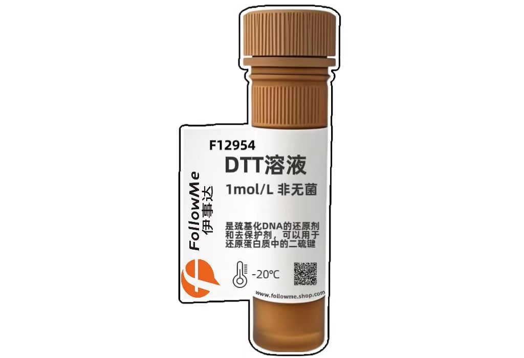 产品简介DTT即DL-Dithiothreitol,中文名为二硫苏糖醇。分子式为C4H10O2S2,分子量为154.25,纯度>99%。常用还原剂,有抗氧化作用。DTT和巯基乙醇相比,作用相似,是巯基化DNA的还原剂和去保护剂,以用于还原蛋白质中二硫键,有抗氧化作用。但DTT的刺激性气味要小很多,毒性也比巯基乙醇低很多。而且DTT比巯基乙醇的浓度低7倍时,两者效果相近,但DTT价格略高一些。