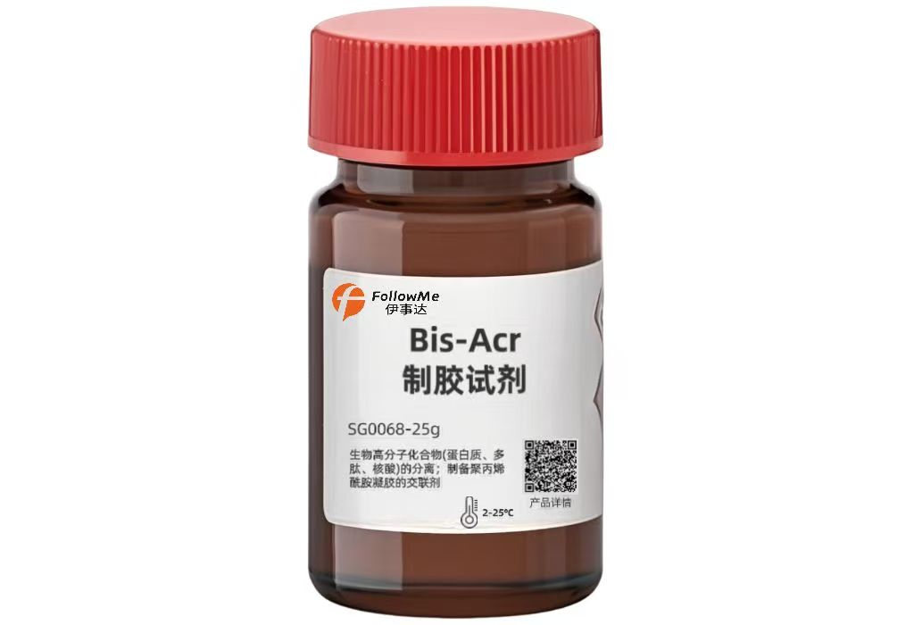 产品介绍生物高分子化合物(蛋白质、多肽、核酸)的分离;制备聚丙烯酰胺凝胶的交联剂