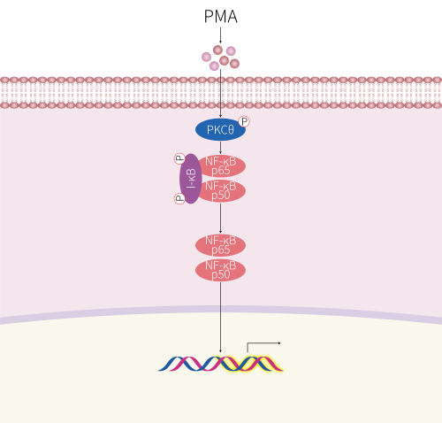 产品介绍核因子-κB (NF-κB)/Rel 蛋白家族由五个成员组成:NF-κB2 p52/p100、NF-κB1 p50/p105、c-Rel、RelA/p65 和 RelB。这些蛋白通过形成同源或异源二聚体发挥转录因子功能,广泛调控多种生物学过程,包括先天性和适应性免疫应答、炎症反应、细胞应激反应、B 细胞发育以及淋巴器官形成等重要生理病理过程。在经典的 NF-κB 信号通路中,NF-κB/Rel 蛋白通常与抑制性 IκB 蛋白结合而处于失活状态。当细胞受到促炎细胞因子(如 TNF-α、IL-1β)、脂多糖 (LPS)、生长因子或抗原受体刺激时,会激活 IKK 复合体(由 IKKβ、IKKα 和调节亚基 NEMO 组成)。活化的 IKK 复合体促使 IκB 蛋白发生磷酸化修饰,进而触发 IκB 的泛素化降解过程,最终导致 NF-κB/Rel 复合体的释放。释放后的 NF-κB/Rel 复合体还需经过一系列翻译后修饰(包括磷酸化、乙酰化和糖基化等)才能获得完全活性。随后,这些活化复合体转位至细胞核内,既可单独作用,也能与其他关键转录因子(如 AP-1、Ets 和 Stat 家族成员)协同作用,共同调控下游靶基因的表达,从而实现对多种生理病理过程的精确调控。 NFKB Reporter THP1 Cell Line 细胞系以 THP1 为工具细胞,采用慢病毒感染的方式,构建稳定表达NF-κB-Luc报告基因的细胞系,可用于检测NF-κB信号转导。在被PMA(PKC特异性激活剂)激活后,内源性NF-κB转录因子与DNA反应元件结合,诱导荧光素酶报告基因的转录。