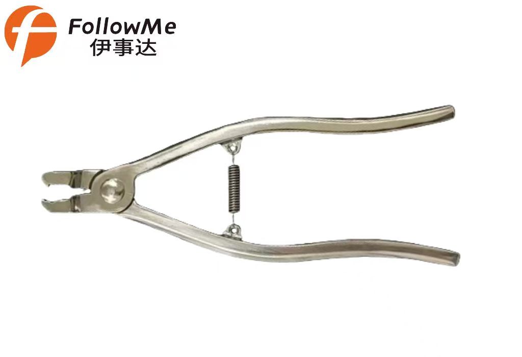 操作步骤(仅供参考)将耳标消毒后,放于耳标钳的相应位置,取耳朵适当位置,用力握钳子,使耳标尖端穿过耳朵并穿过小孔,尖端弯曲锁住,打标完成。