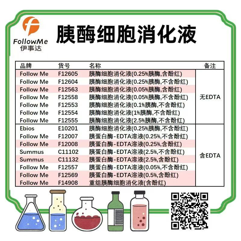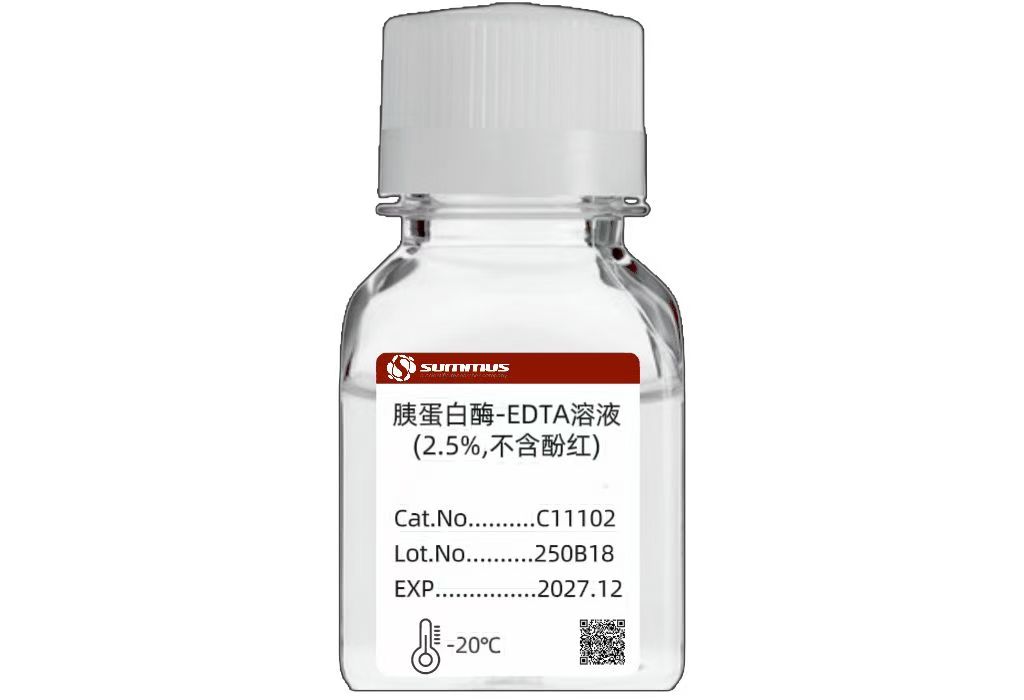 别名胰蛋白酶-EDTA溶液(2.5%:0.02%,不含酚红),胰蛋白酶-EDTA消化液(2.5%,不含酚红)