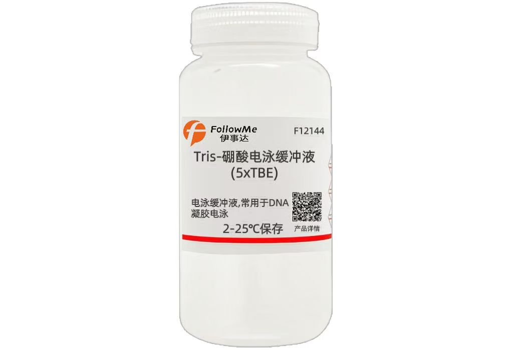 本品Tris-硼酸电泳缓冲液(5×TBE)是10倍浓缩的TBE,主要由450mMTris-硼酸,10mM EDTA 等组成,使用时需用蒸馏水或去离子水稀释为 0.5×TBE 后使用。该试剂仅用于科研领域,不适用于临床诊断或其他用途。