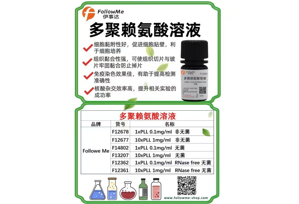 ②Poly-L-lysineSolution用于细胞培养时,包被至少5min,有些实验需要包被1~2h,有些情况则需要包被过夜。