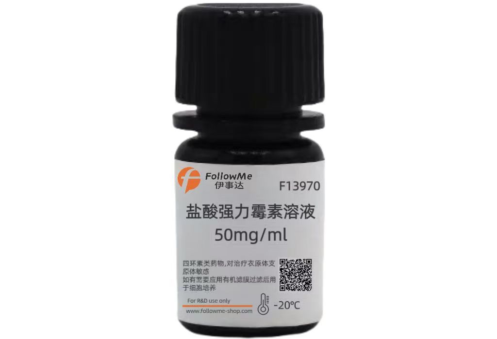 本品Doxycycline Solution(50mg/ml)由强力霉素盐酸盐和醇组成,如有需要应用有机滤膜过滤后用于细胞培养。主要用于生物科研领域,不适用于临床诊断或其他用途。