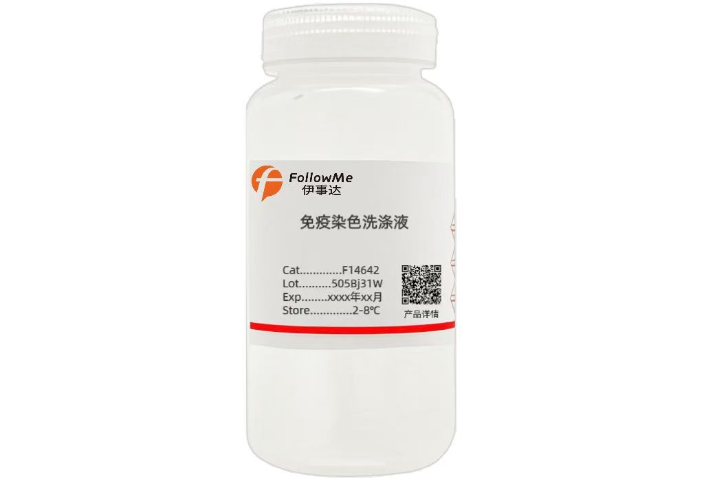 本品免疫染色洗涤液中含有 Tris 以及适量 Triton X-100 等,可以通透细胞膜,经本免疫染色洗涤液处理的细胞样品可以检测细胞内的目的蛋白,包括细胞浆内和细胞核内的目的蛋白,按照每组样品洗涤需要 10ml 免疫染色洗涤液计算,1 个包装的免疫染色洗涤液可以洗涤 50 次。该试剂仅用于科研领域,不适用于临床诊断或其他用途。