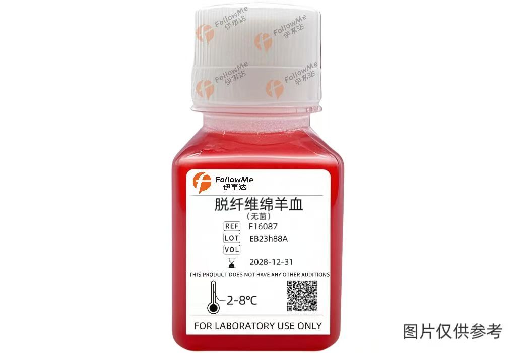 产品简介本品为封闭系统里健康绵羊无菌采血,玻璃珠摇床脱纤而成,天然新鲜血液,颜色鲜红,无任何细菌、真菌、支原体等,不添加任何抗凝剂、防腐剂、抗生素,常用于红细胞间接凝集试验、补体结合试验、T 淋巴细胞 E 花环试验、制作致敏细胞、免疫注射抗体、制作血平板等试验。注:本产品易产生溶血现象,每天需轻轻将红细胞全部摇起